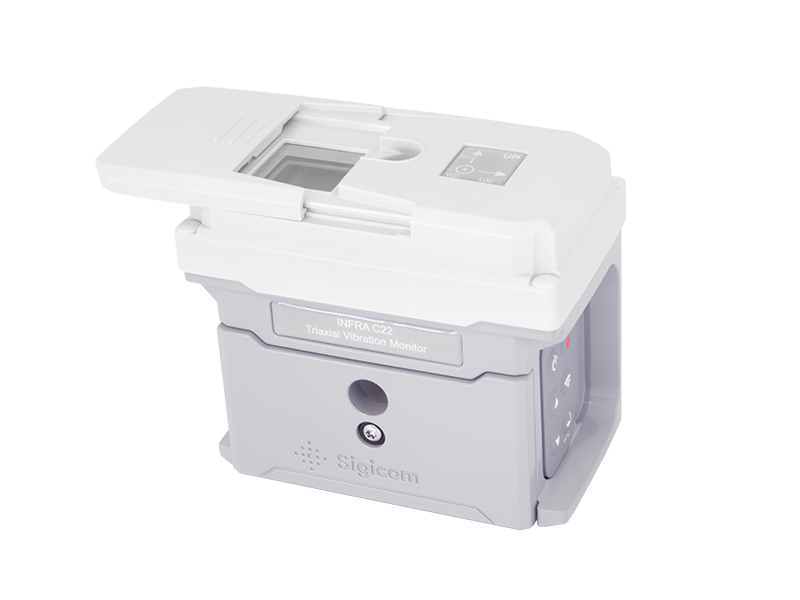 De INFRA C22 trillingsmonitor biedt een robuust ontwerp met een IP67-beschermingsklasse en is ontworpen voor een lange levensduur in zware omstandigheden. Het kleurendisplay is beschermd tegen krassen en weersinvloeden met een schuifbare schermhoes, onderaan heeft de INFRA C22 bescherming tegen erosie. Voor monitoring in explosieve gebieden wordt de INFRA C22 geleverd in een Ex/ATEX-beschermingsbox. Het vervangen en opladen van de batterijen van de INFRA C22 trillingsmonitor is snel en eenvoudig en wordt stapsgewijs beschreven in de handleiding en op Sigicom Academy.